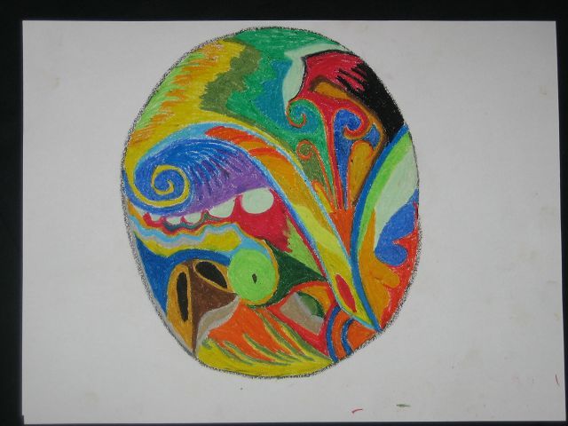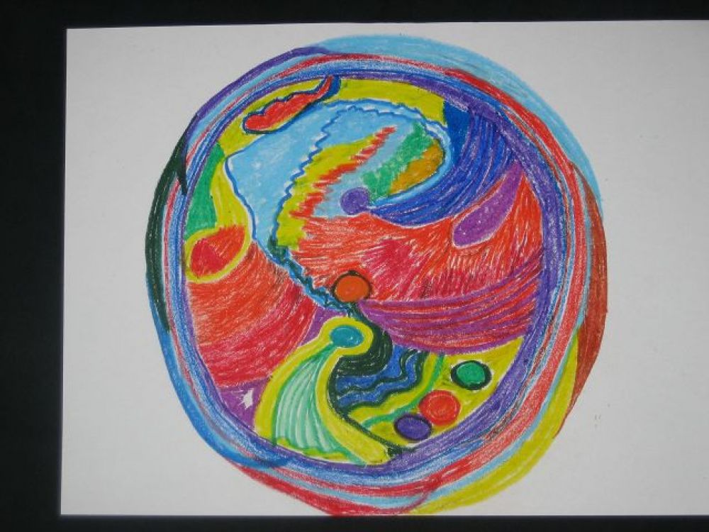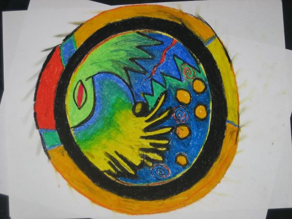Die Rolle entwickelt sich aus dem gemalten Mandala und den Textbotschaften dazu.