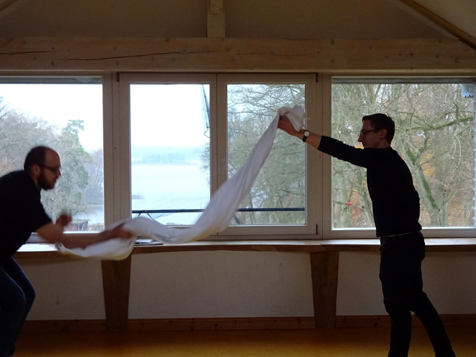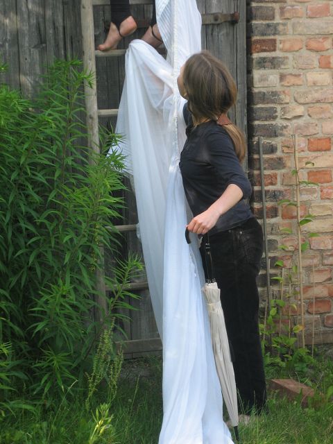 Spiel in Räumen mit Körper und Stimme, der Raumcharakter wird genutzt.