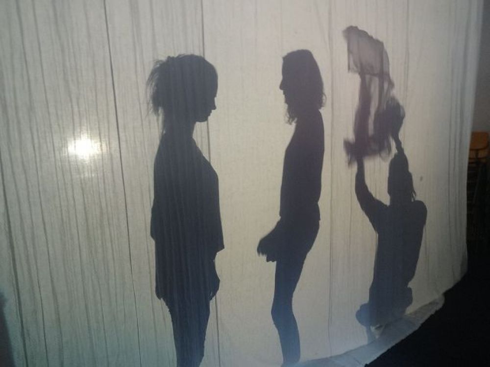 Schattentheater: Szenenentwicklung mit Objekten nach unterschiedlicher Musik im Wahlpflichtfach Kl.9 am Gymnasium Bützow.