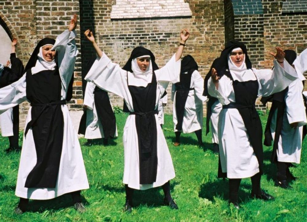 Rollenspiel im Kloster mit Einkleiden und Klostertätigkeiten wie Schreiben, Spinnen, Singen und Tanzen mit Pastorin Asja Garling